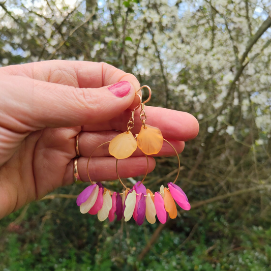 Paola, les boucles d'oreilles pétales colorés, différents modèles, crochets ou clips