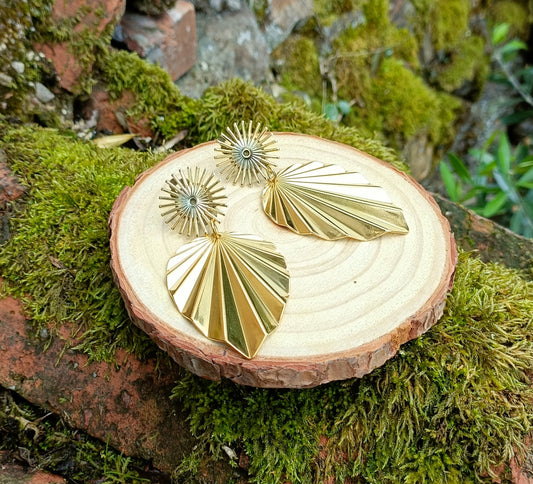 Augustine, les grandes boucles d'oreilles clips soleil et feuilles dorés or fin