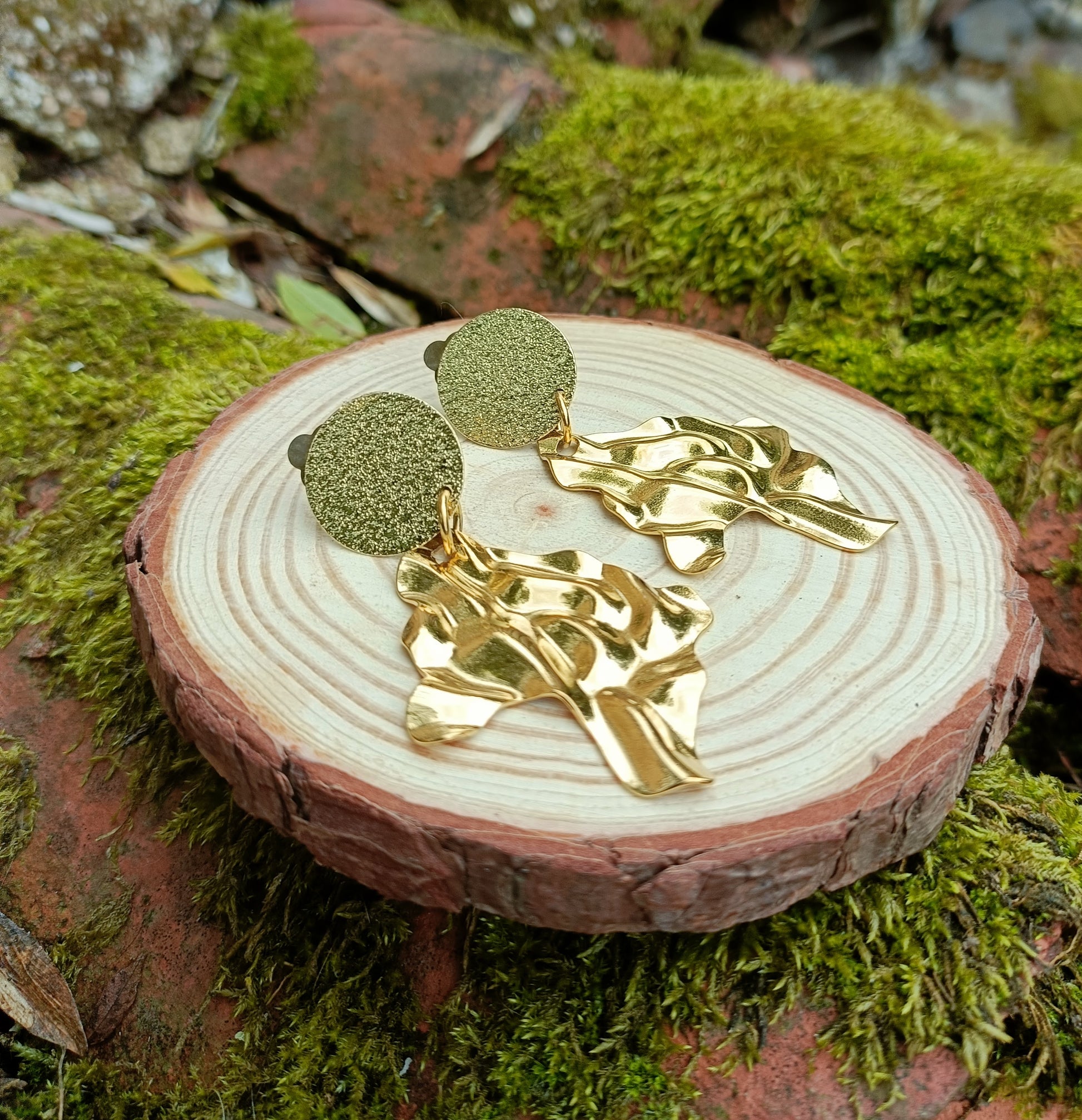 Disponibles avec puces larmes dorées or fin ou clips en laiton doré martelé de très bonne tenue.