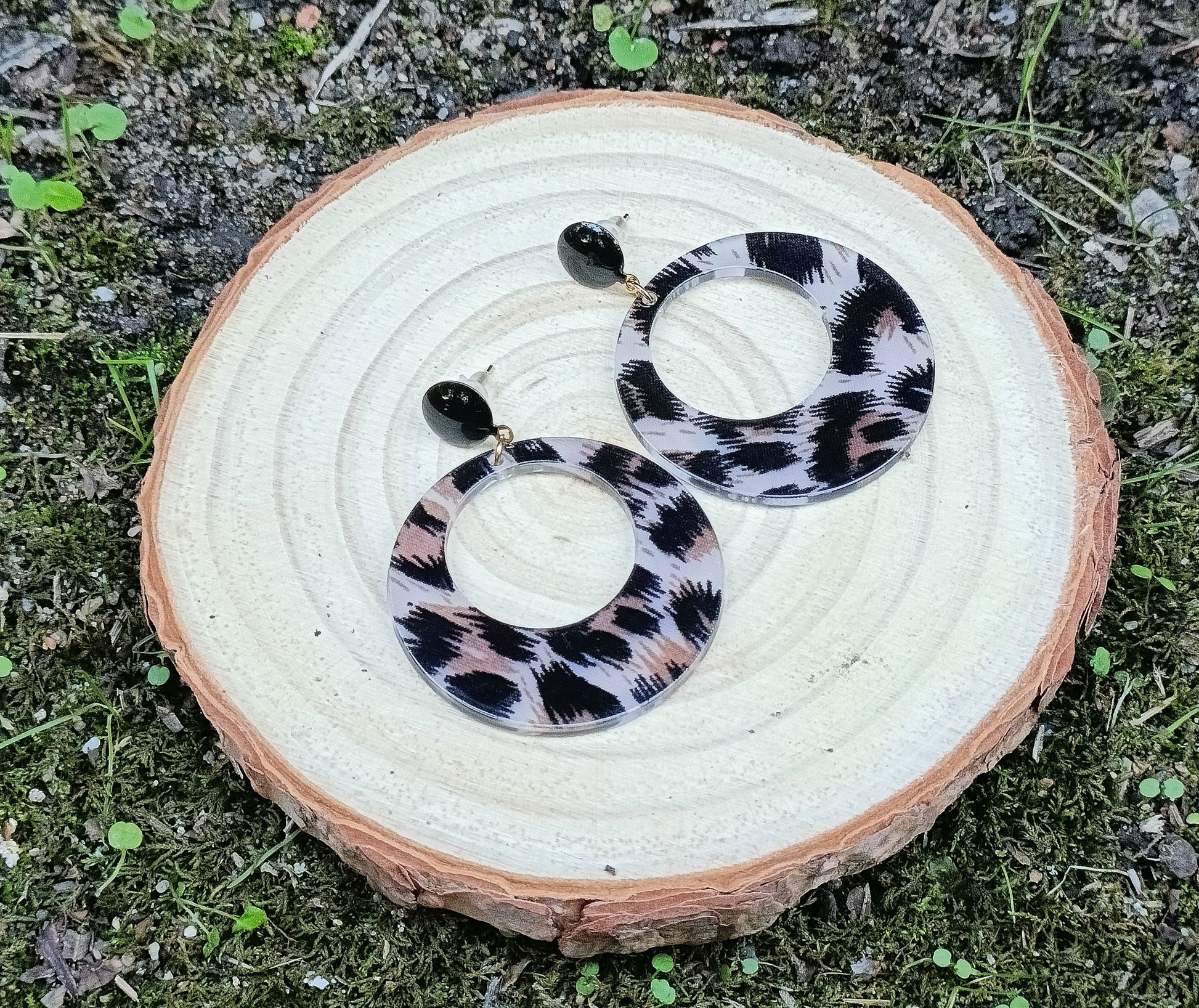 Marietta, les grandes boucles d'oreilles léopard, puces noires